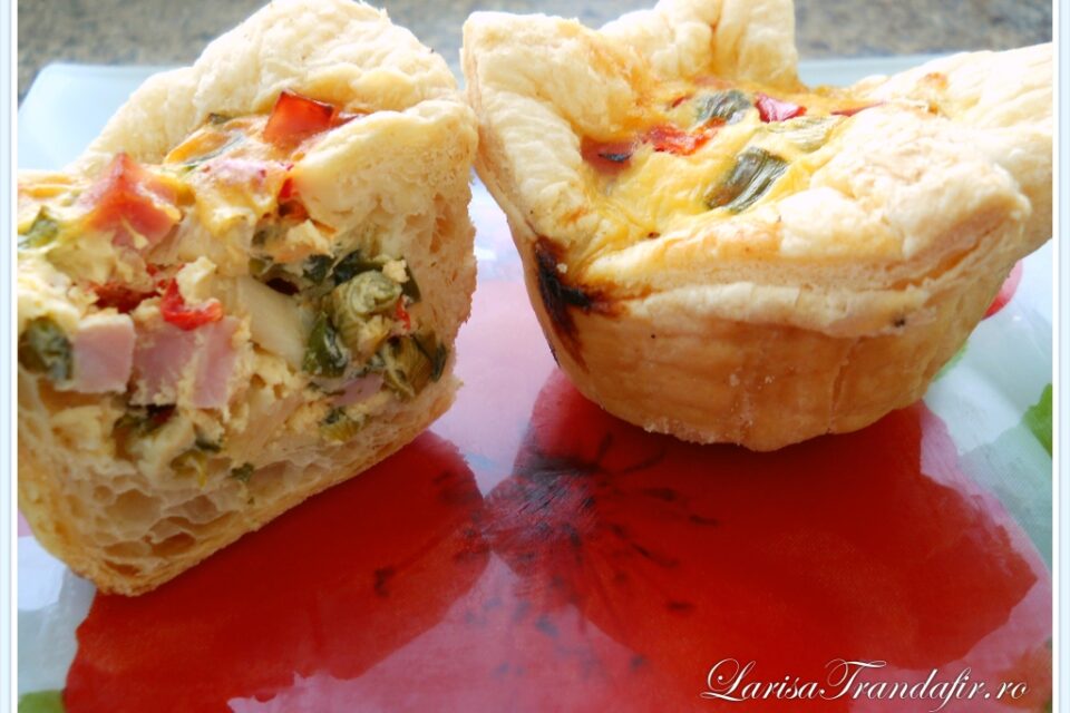 - Se pune fiecare patrat de aluat in forme de briose, presandu-le usor cu degetele.