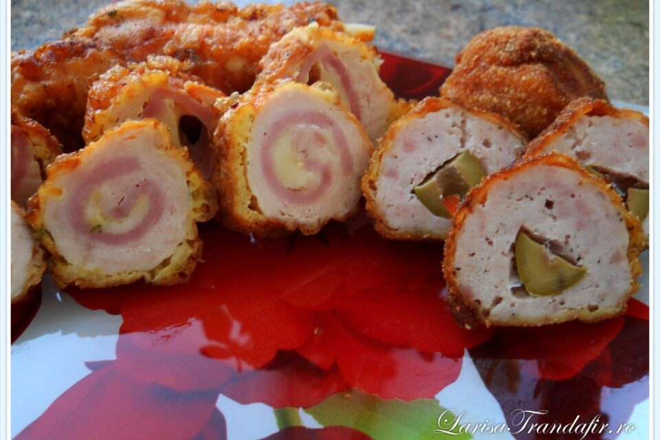 - Se formeaza chiftelute de marimea unei nuci in mijlocul careia se introduce o maslina verde.