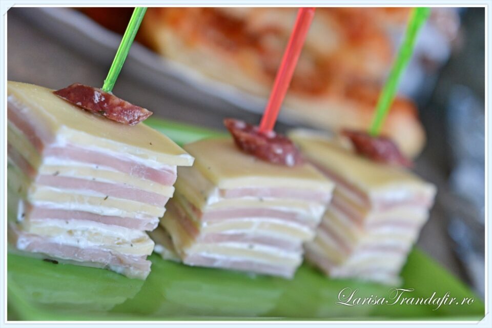 - Procedeul se repeta pana epuizam 4 felii de sunca si 4 de cascaval.