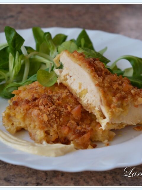 Pui in crusta de crackers la cuptor cu salata de valeriana. O…