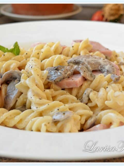 Fusilli cu sos de smantana, ciuperci si sunca – un preparat rapid…