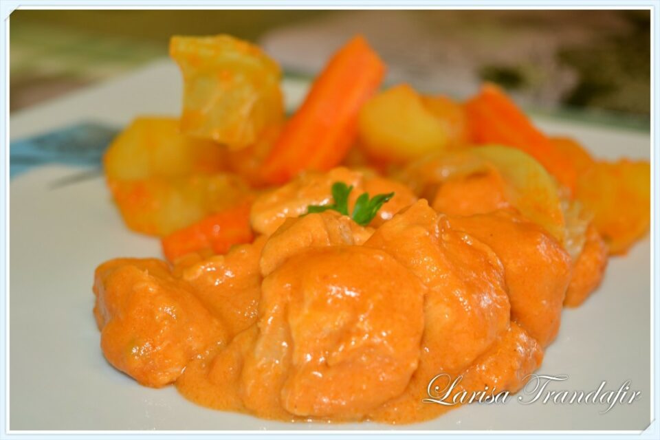 - Se serveste carnea de pui alaturi de legumele scoase anterior.