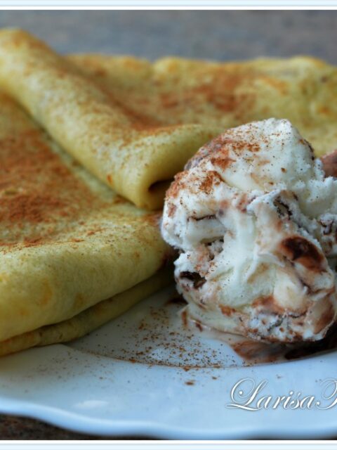 Clatite umplute cu dulceta de cirese amare alaturi de un glob de…