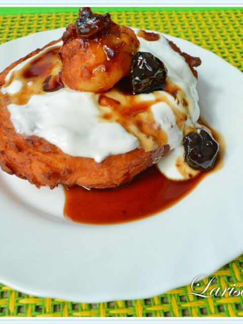 Papanasi cu dulceata de cirese dupa o reteta brasoveana. Un preparat cee contine ingrendiente…